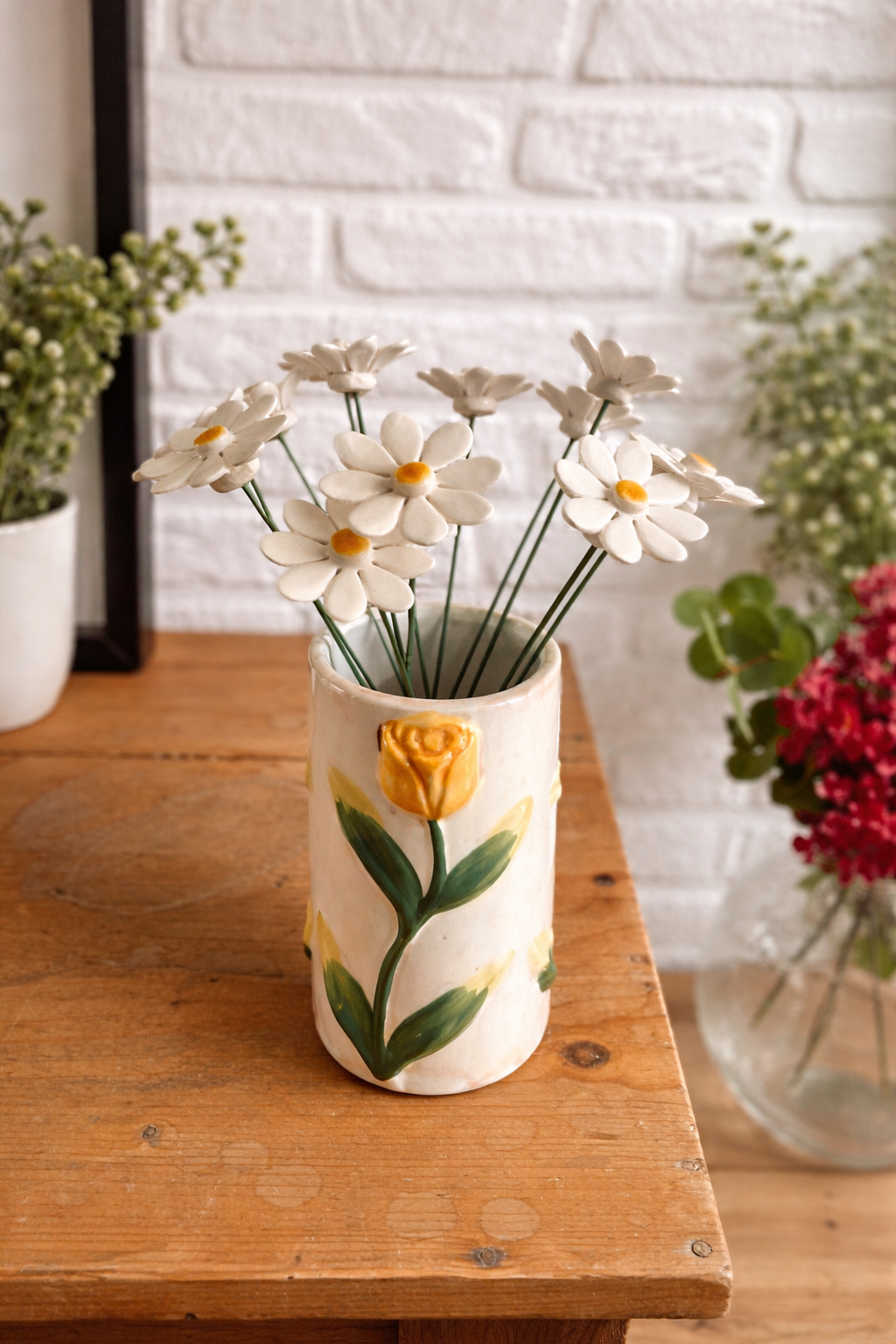 ACTIE - Madeliefjes van keramiek - handgemaakt - 4 kleuren
