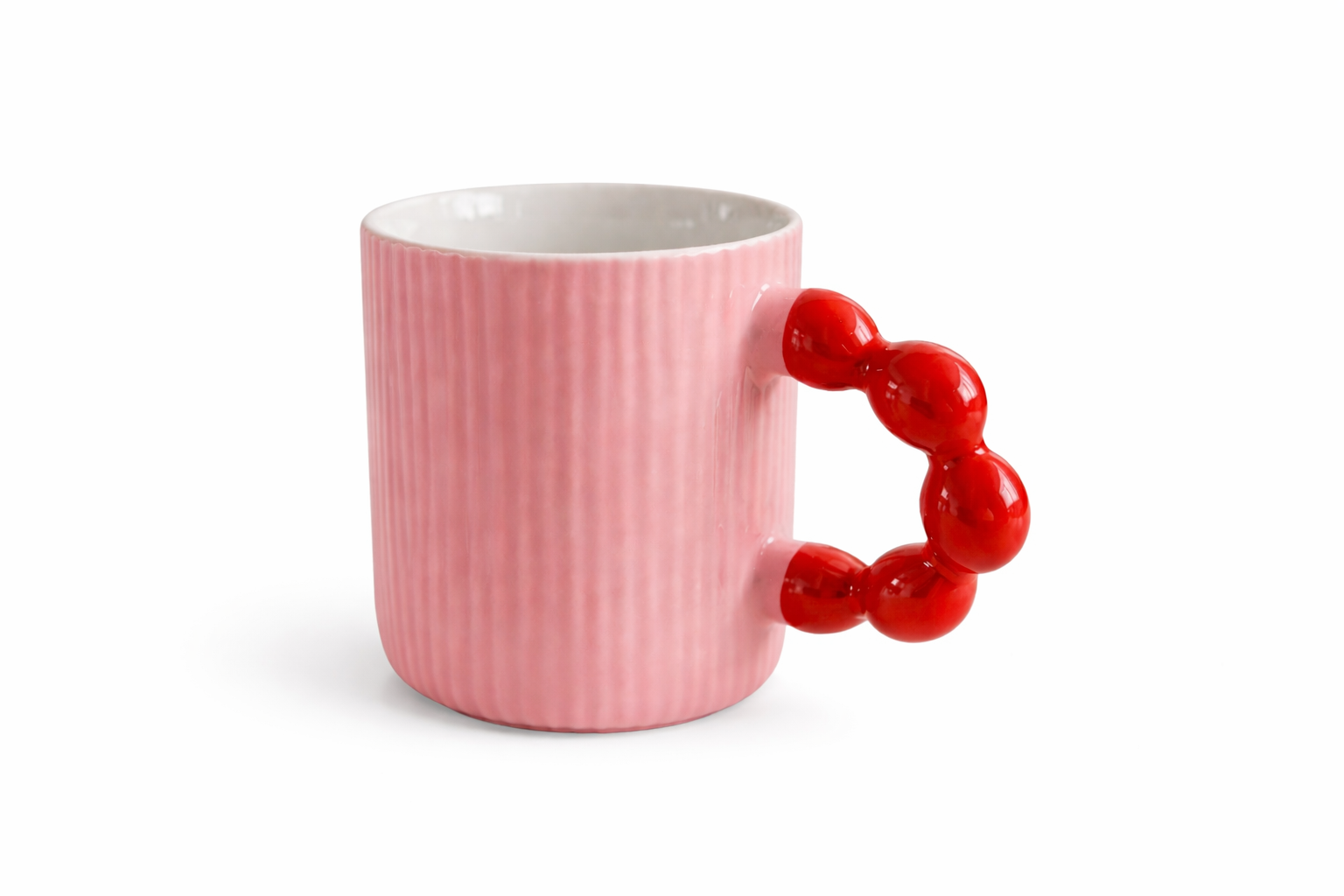 De trendy roze mok met opvallend handvat geeft direct sfeer en het tegeltje maakt jouw koffiehoek helemaal af.